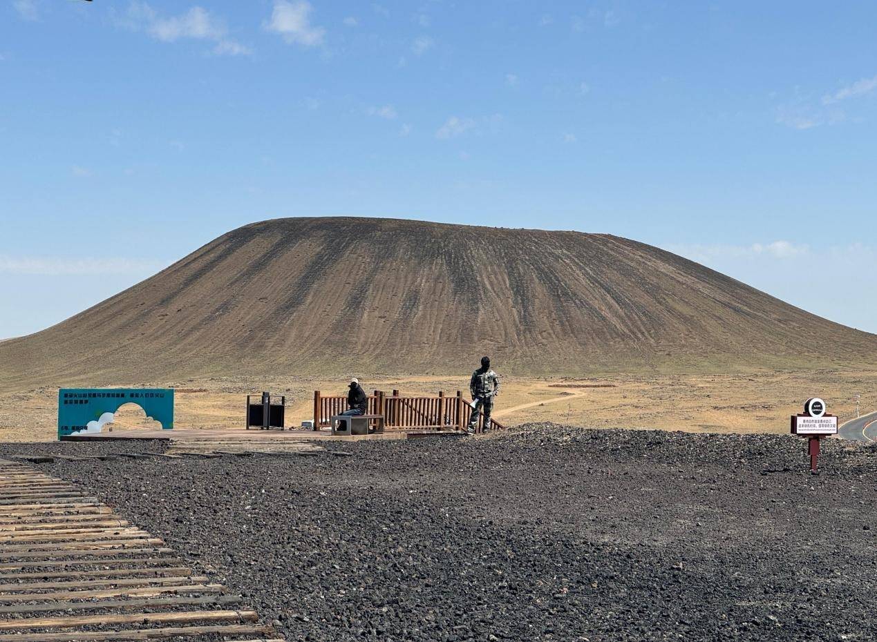 图为乌兰哈达火山群五号火山。新华社发“第一次近距离接触火山,这种震撼感无法用语言形容。”来自北京的游客李茂说。身着仿制航天服的年轻人在火山口摆出探索姿势,欢声笑语回荡在壮观的火山群间,人与自然的奇妙互动,让这片古老的地质遗迹焕发新的活力。